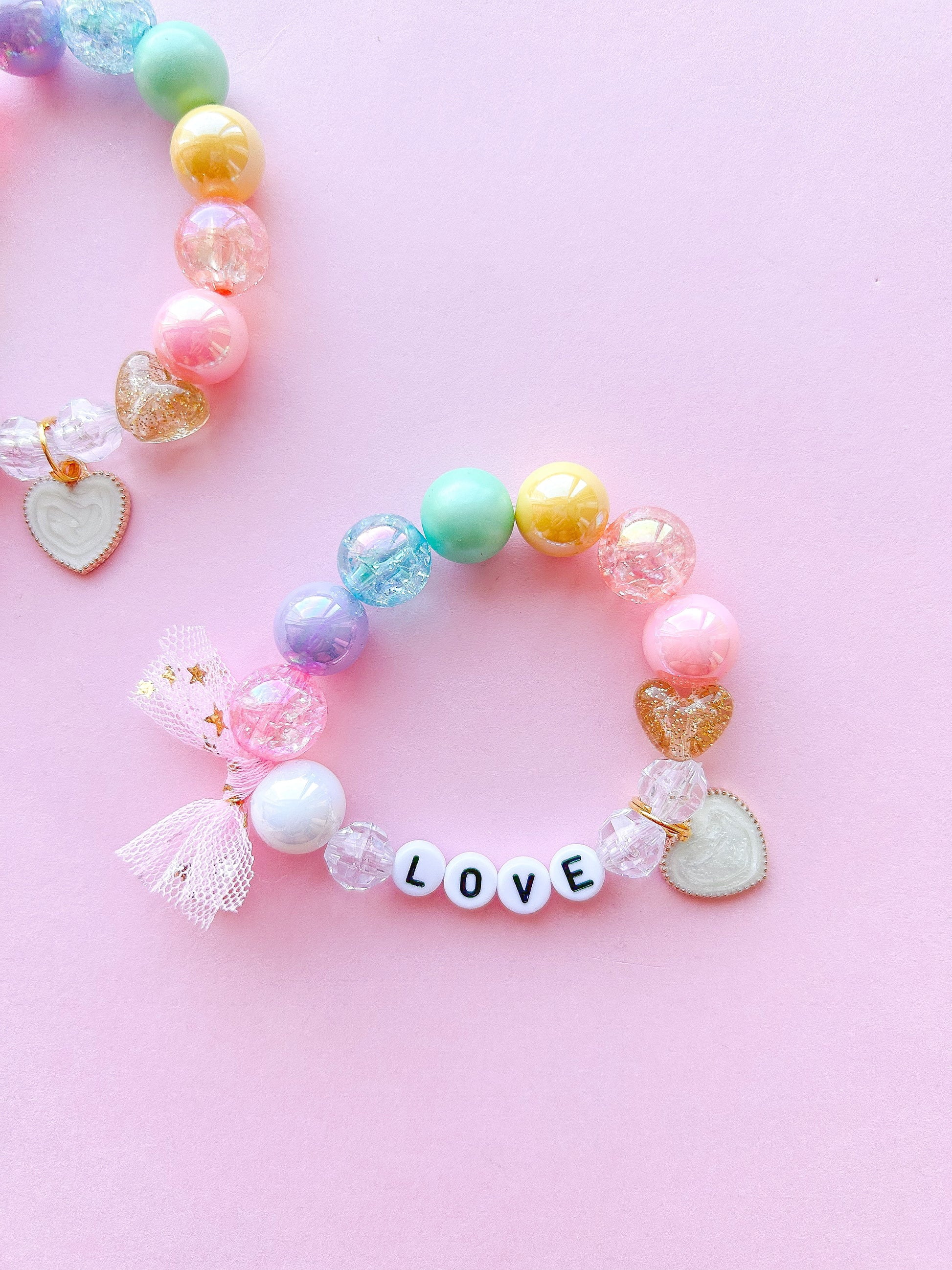 Kids Enamel Heart Beaded Charm Bracelet (VAL-1)