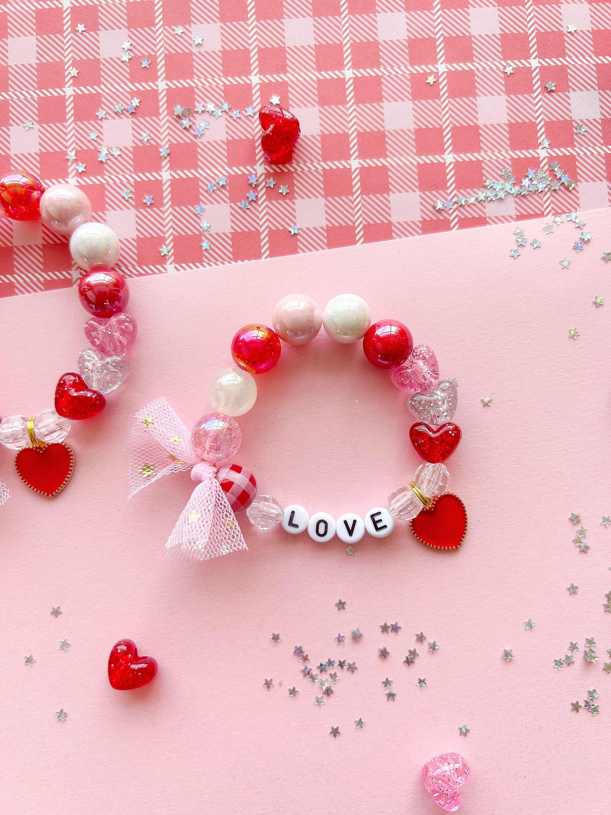 Kids Red Heart Beaded Charm Bracelet (VAL-2)